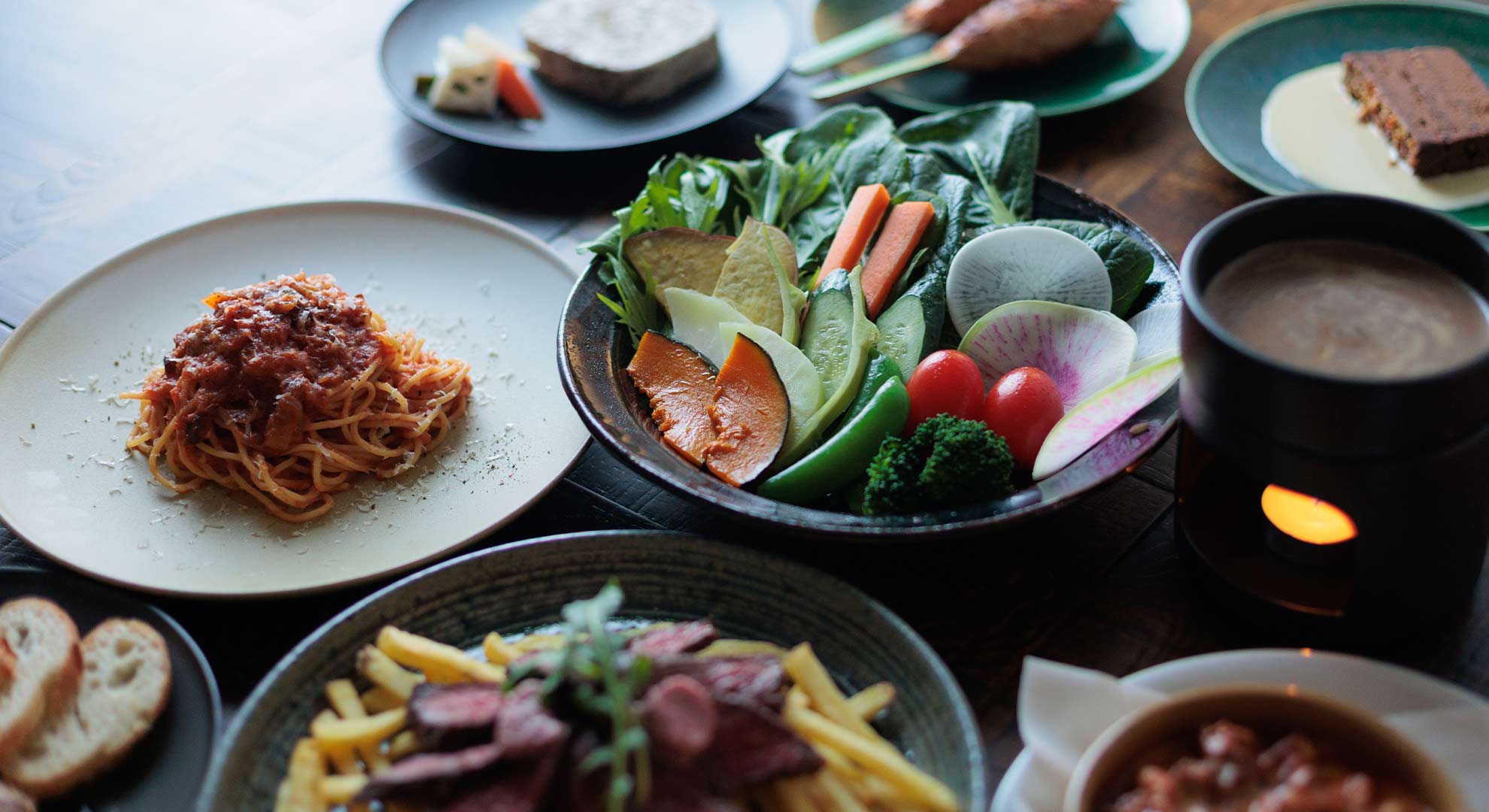 当店のお料理はフランス料理をベースとした国を問わない多国籍料理。 イタリア料理や日本料理のエッセンスも交えた型にはまらない創作料理をお愉しみください。 季節ごとにおいしい旬な食材を使用し、素材の味を最大限に引き出した自慢の料理でお客様をお出迎えします。